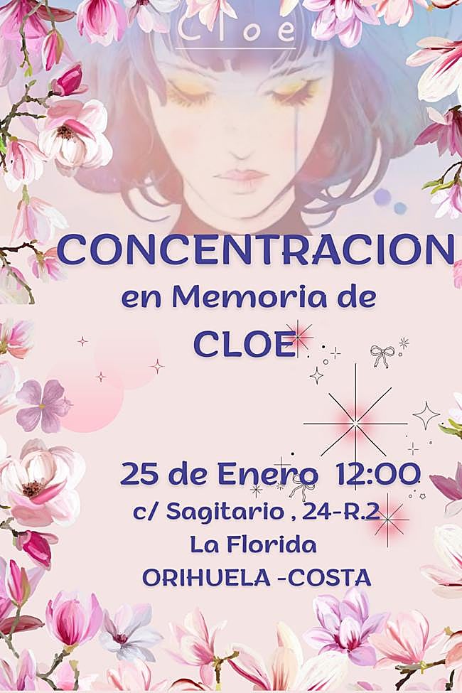El mismo 25 de noviembre, día mundial contra la violencia de género, Orihuela Costa se desayunaba la noticia del asesinato de Cloe, una joven de solo 15 años que acababa de morir asesinada de una cuchillada por su expareja de 17. Los vecinos no olvidan el estupor que causó este horrible crimen ocurrido en un oscuro callejón de La Florida y algunos de ellos se han unido en una plataforma. Bajo el nombre 'En memoria de Cloe', este grupo ha convocado una concentración para el próximo día 25.
