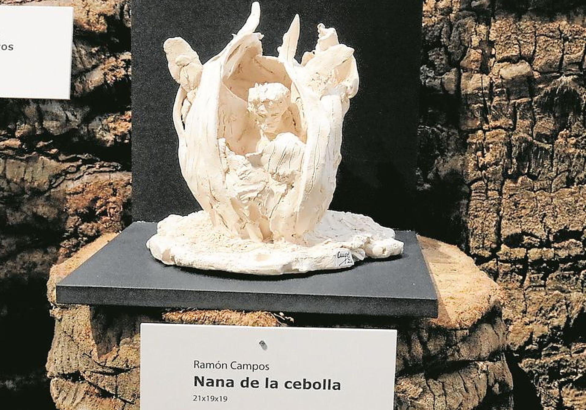 Con esa blancura ha levantado con arcilla poemas como 'Nanas de la cebolla'. Asegura que ha sido una de las que más le ha costado por la dificultad de transmitir esas necesidades que Miguel Hernández quiso mostrar a través de una cebolla. De ella, en la escultura emerge una figura que representa a la mujer del poeta, Josefina Manresa, y que a través de dos alas se trata de simbolizar la libertad.