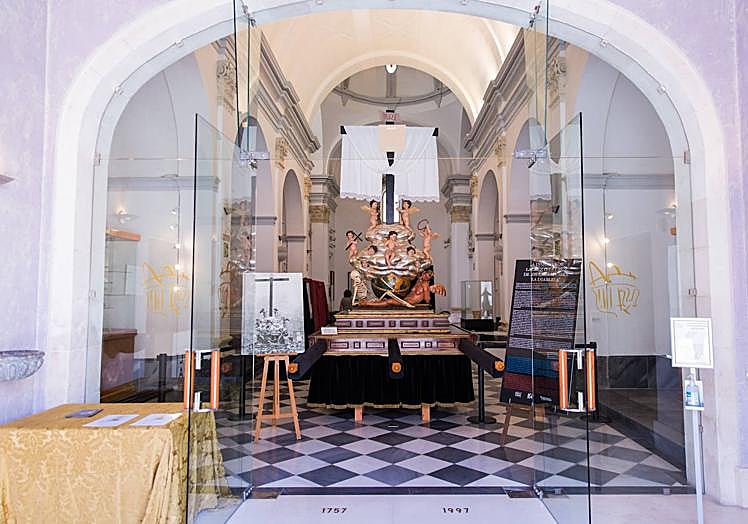 El Museo Arqueológico Comarcal ha reabierto sus puertas, pero de una manera un tanto singular. Si bien las vitrinas con la colección arqueológica del centro se aprecian a simple vista todavía ocupando las capillas del oratorio del antiguo hospital, la única pieza que se puede observar de cerca es La Diablesa. La obra del prestigioso imaginero Fray Nicolás de Bussy protagonista de todos los sábados santos ha sido puesta justo al entrar, en el mismo 'hall' y no al fondo de la nave, como era costumbre. A la vista de todo el que pase de camino por la calle.
