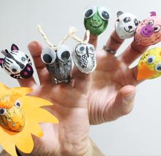 De hecho, el entretenimiento puede empezar mucho antes de que se abra el telón, creando las marionetas. Hay decenas de propuestas para hacerlo. Una forma fácil, económica, y que además permite trabajar conceptos como la reutilización de residuos y el reciclaje, es fabricar animales para los dedos con cáscara de nuez. Solo se necesita un poco de pintura, cartulina, cola... ¡y lo que haya por casa!