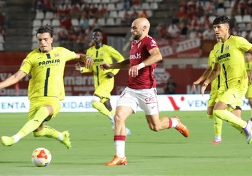 Después, Flakus disparó fuera y Bustos remató de cabeza desviado antes de que el choque se torciera. Fue en una jugada de ataque del equipo de Etxeberria en la que Isi Gómez, que ya había errado en algún pase anteriormente, regaló un balón a Víctor Moreno, que firmó un contragolpe letal y de manual que llevó a la red Álex Rubio, que no quiso celebrar el gol ante su ex afición en señal de respeto. El Murcia quedó aturdido con el golpe y los siguientes minutos fueron de un Villarreal B que con su calidad y paciencia con el balón puso nervioso al Enrique Roca. Hasta el tramo final de la primera mitad en la que el equipo grana despertó.