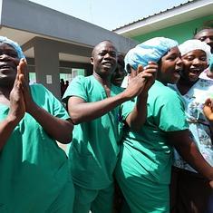 Médicos liberianos celebran el final de la epidemia de ébola en el país.