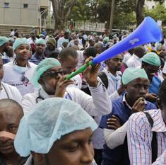 Cientos de trabajadores en huelga se dirigieron a la sede de Hacienda en Nairobi, vestidos con batas de laboratorio, máscaras y gorros de quirófano, antes de que la policía los dispersara con gases lacrimógenos. "Ninguna intimidación o propaganda afectará a nuestra determinación", dijo Samuel Oroko, responsable del Sindicato de Médicos, Farmacéuticos y Dentistas.