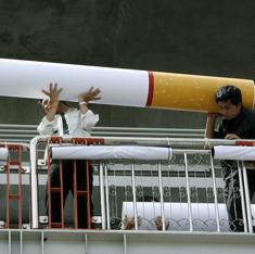 Cigarro gigante utilizado durante una protesta antitabaco en Bangkok.
