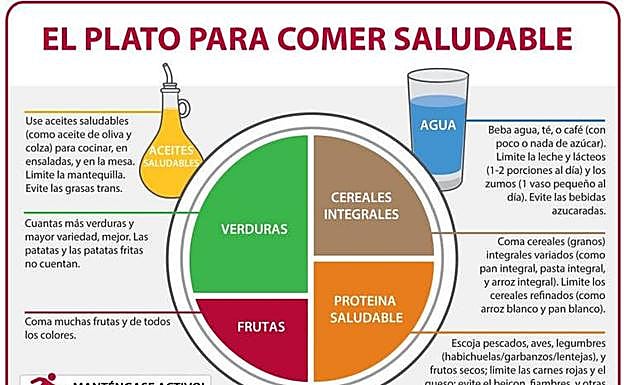 Comida y cena. Adaptando el famoso plato de Harvard podríamos combinar: