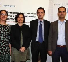 De izquieda a derecha, la doctora Navarro, especialista del área de reumatología del Hospital La Paz; la doctora Àngels Roca, responsable de la relación con pacientes de Novartis Farmacéutica España; el presidente de CEADE, Pedro Plazuelo, y el doctor Marco Garrido, investigador de la Univeridad de Sevilla.