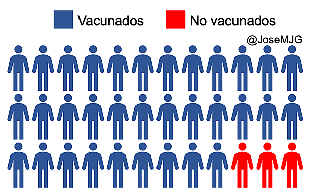 Aunque lo que dice el titular es cierto, la información es incompleta y puede generar mucha confusión si no se saben interpretar los datos que nos ofrece. Si miramos los números con ojo crítico y teniendo en cuenta la proporción de vacunados y no vacunados veremos que la realidad es muy diferente.