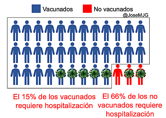 Esto realmente no es algo que nos pueda pillar por sorpresa. Al contrario, es lo esperable cuando la mayoría de la población de riesgo está vacunada. Solo hay que pensar que si el 100 % de la población estuviera vacunada, el 100 % de las hospitalizaciones sería de personas vacunadas.