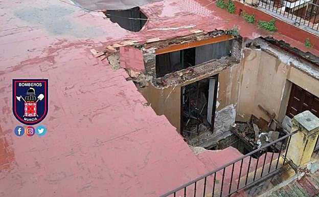 La lluvia hunde el techo de un edificio protegido junto a la Catedral de Murcia