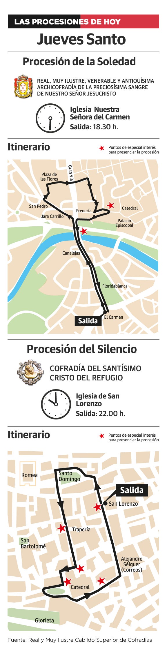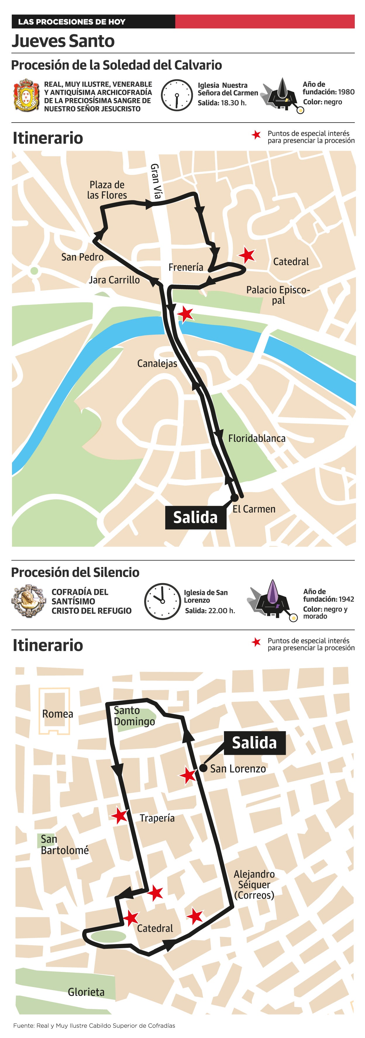 La Cofradía del Santísimo Cristo del Refugio, que preside Ignacio Sánchez-Parra Servet, partirá de San Lorenzo a las 22 horas, si el tiempo lo permite, y hará aún más sentida esta estación de penitencia, tras dos años de pandemia, recorriendo el centro de la ciudad entre los cánticos de las corales.