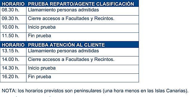 Este proceso supone la oferta de 3.381 puestos de personal laboral fijo, para desempeñar funciones de reparto de envíos, tareas logísticas y atención al cliente en oficinas. Es una convocatoria conjunta que incluye los puestos correspondientes a las tasas de reposición aprobadas para el año 2019 (1.381 puestos), así como 2.000 puestos de los contemplados en el plan de estabilización de empleo temporal 2018-2020 firmado con las organizaciones sindicales CC OO, UGT, CSIF y Sindicato Libre. En concreto, 2.356 para tareas de reparto, 505 para agente de clasificación y 520 para atención al cliente en oficinas.