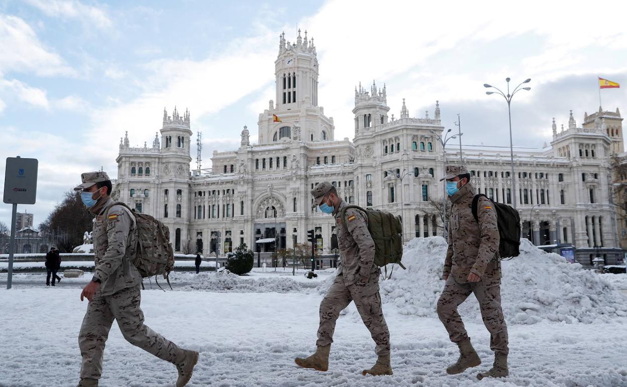 Militares, en la plaza de Cibeles de Madrid. Reuters
