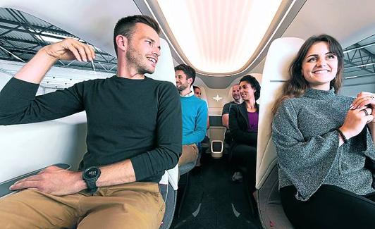 Imagen secundaria 1 - Arriba, el taxi volador de Lilium, de despegue vertical y que vuela a 100 kilómetros por hora y su interior, donde pueden ir siete pasajeros.. A la izquierda, Viguria, en la sala de control. A la derecha, el edificio principal del estratopuerto de Atlas.