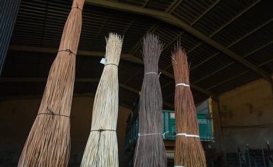 En teoría, las tiendas de bricolaje deberían advertir al cliente de que está comprando mimbre chino, mucho menos duradero que el español, pero no todas lo hacen. «Antes había plantaciones en toda la comarca, y ahora solo crece en Cañamares. Cuesta mucho regar por encharcamiento, los herbicidas no son baratos; todo es muy trabajoso y la gente prefiere no complicarse la vida. Usamos desbrozadoras, pero antes mi abuelo se ponía de rodillas para cortar la planta con tijeras», dice Abel. El mimbre pelado, tanto el blanco como el buff, se vende a 2,5 euros el kilo. Si va dedicado a cubrir vallas, se cotiza a 70 céntimos.