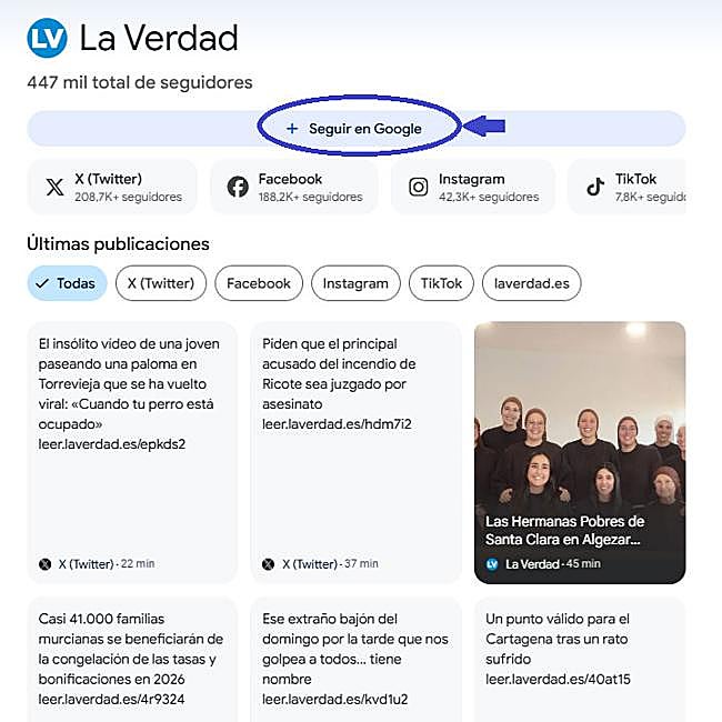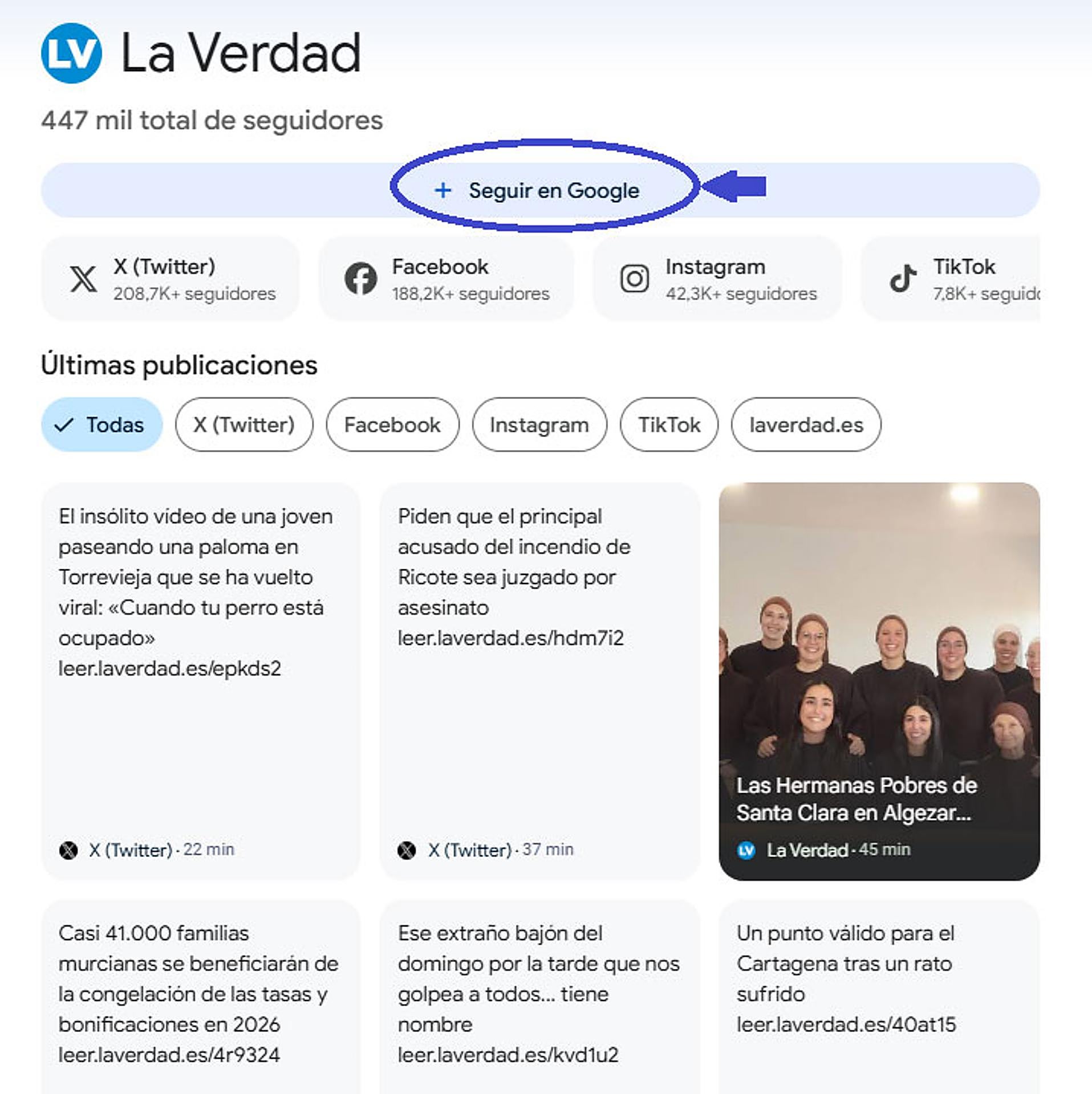 Sigue a LA VERDAD en Google Discover para no perderte la actualidad regional