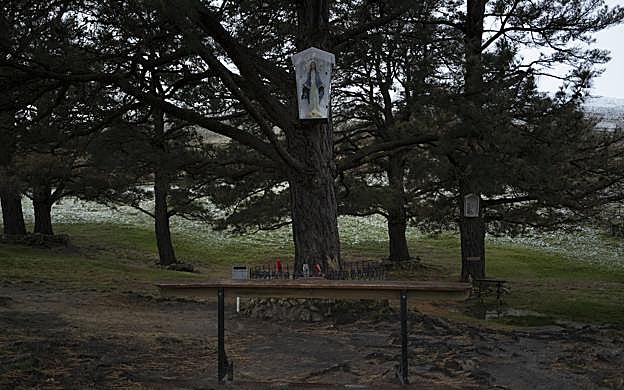 La virgen en Prado Nuevo del Escorial. Multitud de fieles de este lugar donde supuestamente se apareció la Virgen María acuden cada día a rezar el rosario.