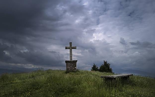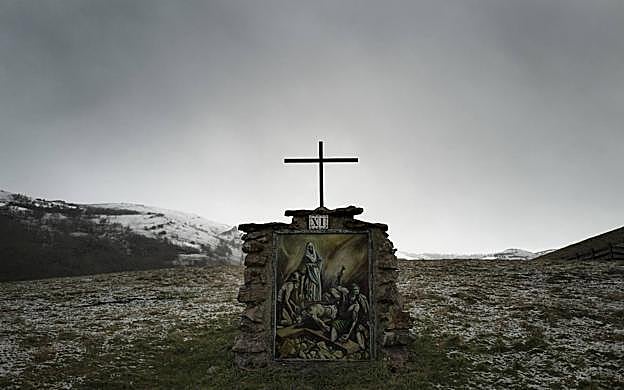 Una cruz en un alto de San Sebastián de Garambal. Durante los meses de pandemia muchos fieles peregrinaron a San Sebastián de Garabandal para pedir ayuda a la Virgen.