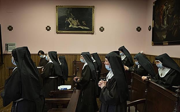 Hermanas Clarisas de Clausura en el interior del Convento de Santa Clara en Guernica. Durante la pandemia aumentó el número de donaciones en el convento por parte de los fieles, pidiendo a cambio que rezarán por ellos y sus seres queridos.