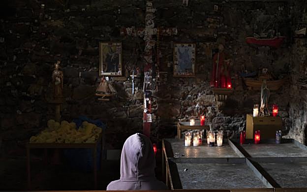 Fotografías de peregrinos que piden a San Andrés de Teixido que intercedan por ellos y sus familias. Durante los meses de pandemia el número de visitantes a la cripta de San Andrés de Teixido fue continua.
