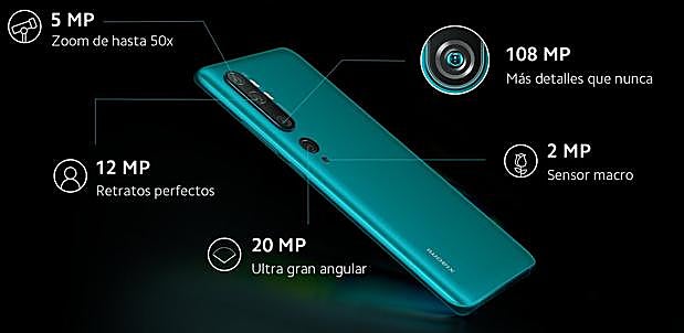 El gigante chino ha presentado este nuevo terminal en un evento celebrado en Madrid. Mi Note 10 dispone de cinco objetivos diferentes y dos flashes: un gran angular de 108 MP; un teleobjetivo de 5 MP; un segundo teleobjetivo de 12 MP; un ultra gran angular de 20 MP y un objetivo macro. Esta configuración permite una experiencia de zoom desde 0,6x a 50x sin comprometer la calidad de la imagen.