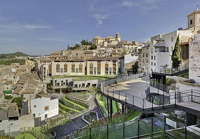 Era un gran vacío, una herida a la espalda de la zona alta de Cehegín. Mediante un proceso de renaturalización urbana, aliviamos una gran desconexión ... en el casco antiguo. Generamos un espacio público del que brota un jardín tanto vertical como horizontal, donde la flora atrae a la fauna, fomentando así la biodiversidad al entorno.