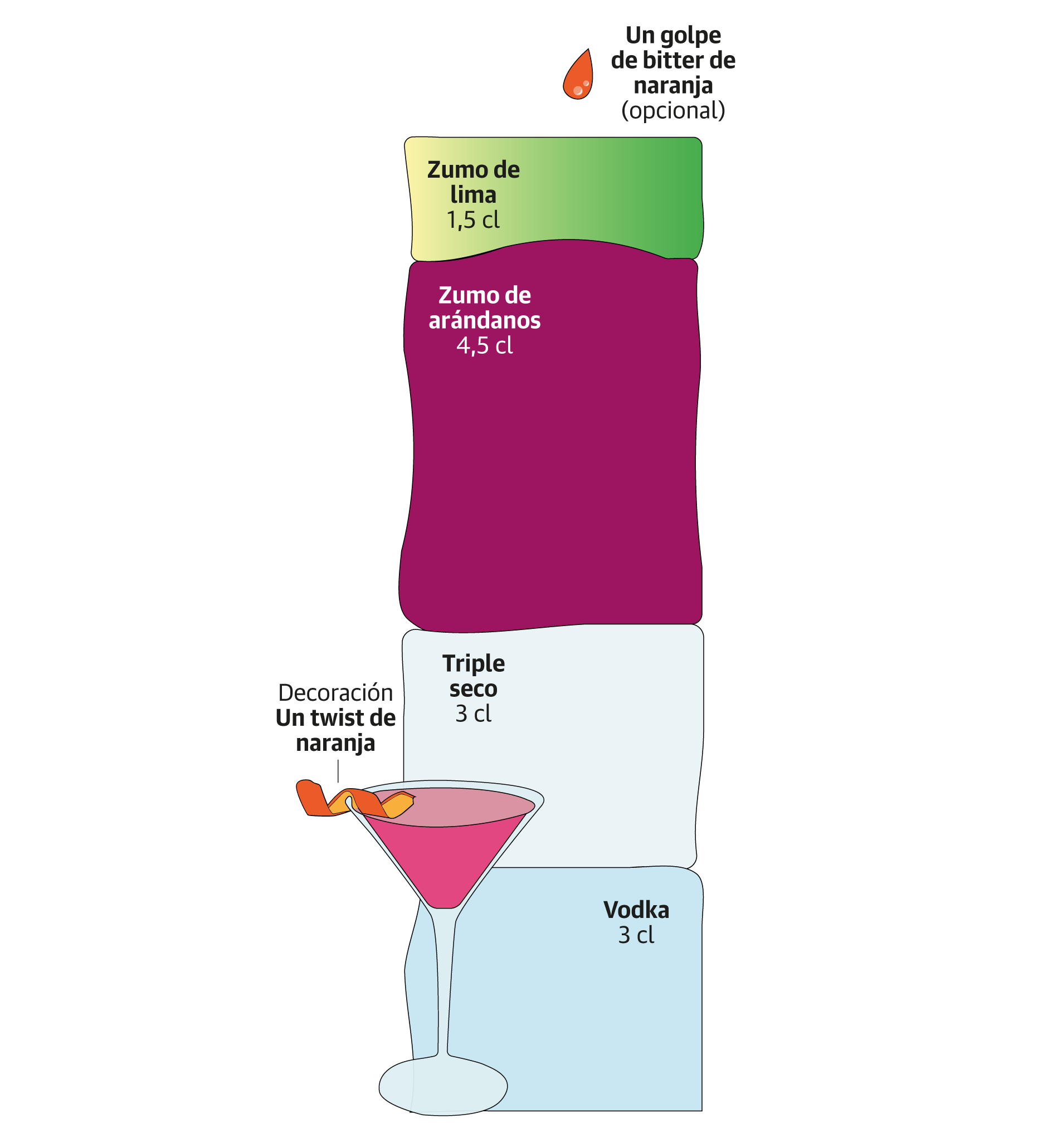 Quizás el Cosmopolitan sea el mejor ejemplo de la universalización del cóctel en los últimos años. El bartender neoyorkino Dale DeGroff creó la receta en su bar de la Gran Manzana y varias mujeres icónicas -Madonna o Carrie Bradshaw ('Sex and the city'), entre otras- lo convirtieron en leyenda al hacerlo suyo. Si James Bond lo hizo con el Dry Martini, ellas lo hicieron con el Cosmopolitan y en un tiempo récord. Cuando este cóctel aterrizó en España obligó a los 'bartenders' a incorporar el zumo de arándanos en su botellero, un ingrediente que hasta entonces no era habitual. Abrió la veda a nuevos ingredientes, técnicas y elaboraciones que hasta entonces la clientela desconocía y no demandaba. Se produjo, además, una actualización de muchos recetarios hasta entonces más tradicionales.