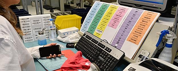 Diagnosis de los teléfonos. Tras registrar los teléfonos en el sistema de SMAAART, se realizan pruebas de funcionamiento. Este proceso consta de 45 puntos de control.