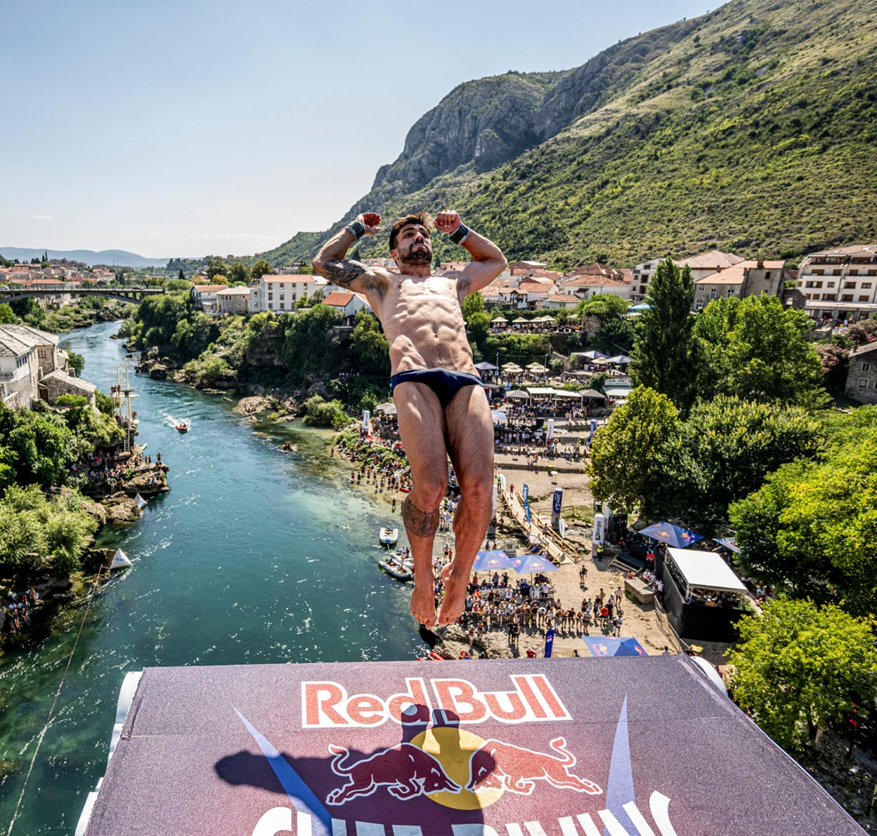En 1993, las fuerzas croatas destruyeron el emblemático puente de Mostar, en Bosnia y Herzegovina. Había sido construido en el siglo XVI y, desde entonces, los jóvenes saltaban desde sus 21 metros como prueba de madurez. Tras su reconstrucción en 2005 volvieron los saltos. Ahora, cada verano acoge las fascinantes Series Mundiales de la Red Bull Cliff Diving, en las que acaba de imponerse, por primera vez, un español: el canario Carlos Gimeno.