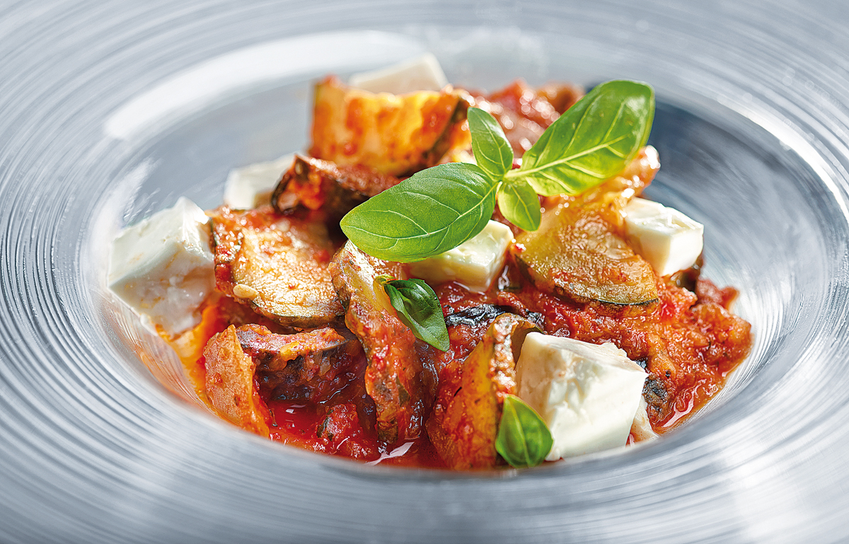 Se espolvorean el queso rallado y la albahaca picada. Se sazona y se sirve.