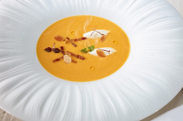 Una receta de Martín Berasategui para un plato sano y fácil a base de crema de calabaza con tocineta
