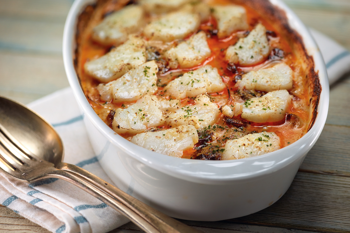 ¡Y listo! Ya tienes tu receta de gratín de cebolleta y bacalao terminada.