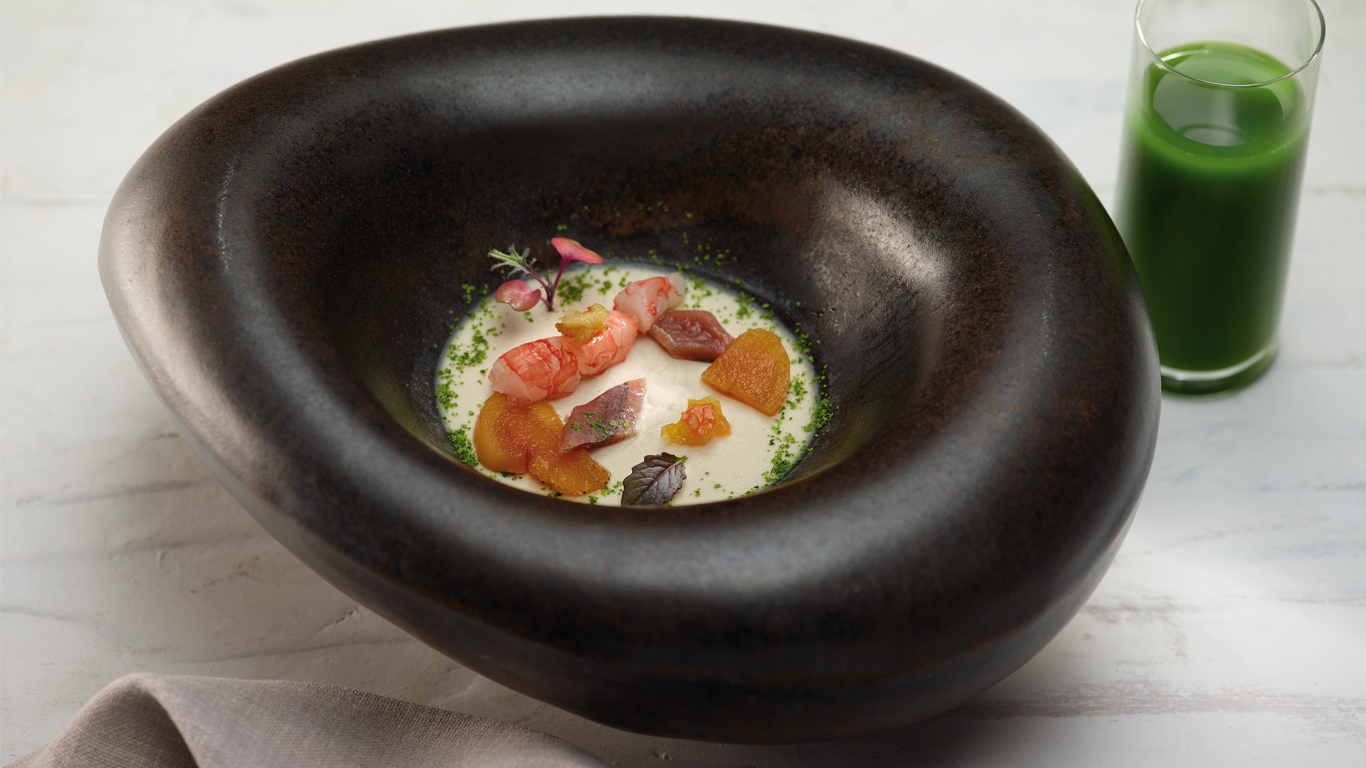 ¡Y listo! Ya tenemos nuestra receta de royal de hinojo y gambas con jugo de trigo terminada.